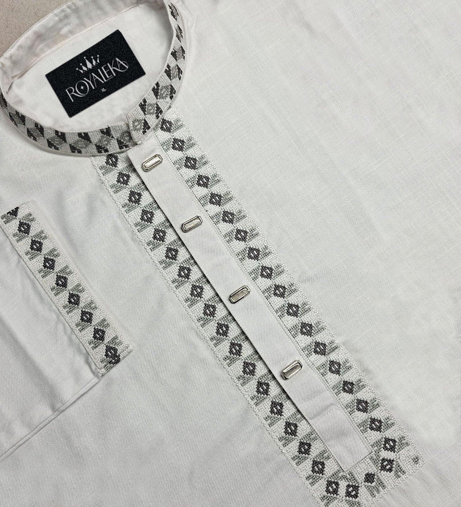 Luxury Wool Cotton full Embroidered Panjabi (White)